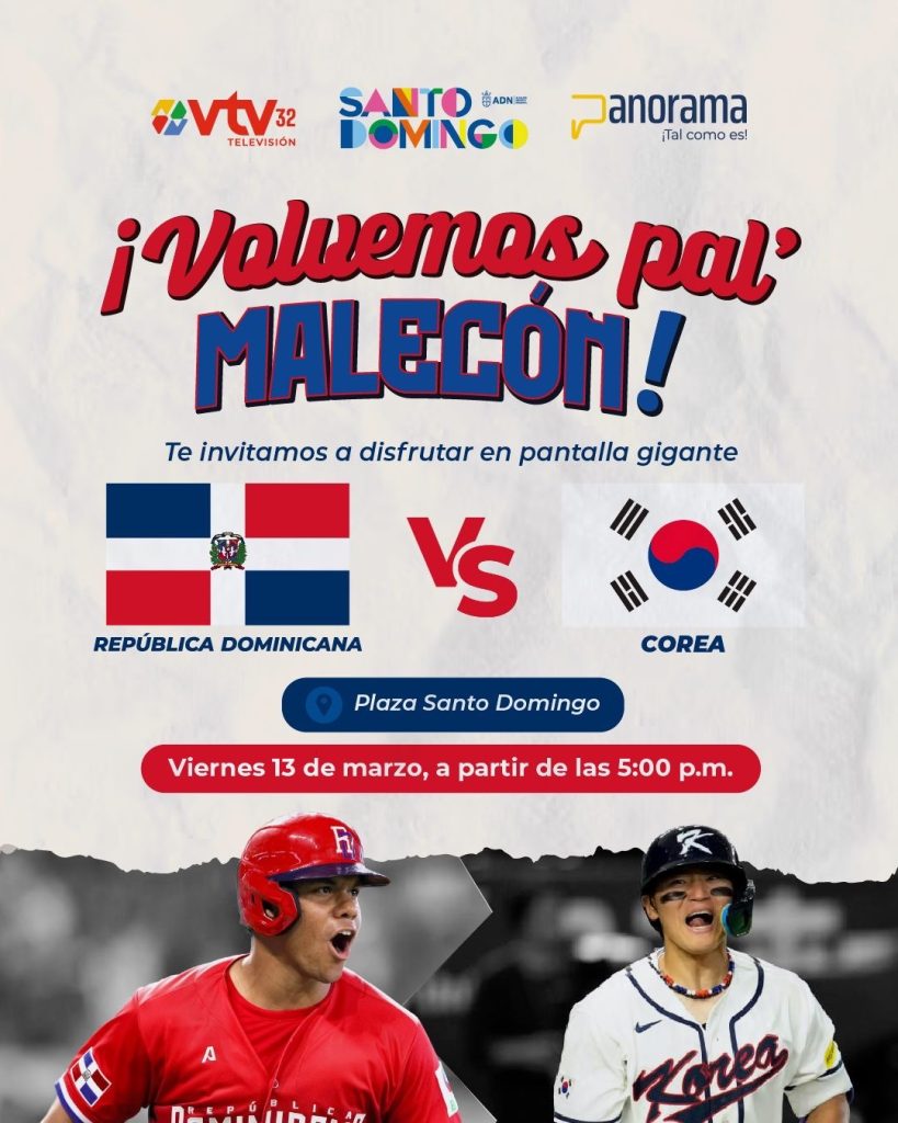 Santo Domingo, DN – Luego del éxito conseguido con la multitudinaria convocatoria lograda en la proyección del juego entre República Dominicana y Venezuela, la alcaldesa Carolina Mejía y Grupo de Medios Panorama anunciaron que transmitirán el encuentro del equipo criollo contra Corea de este viernes a partir de las 6:30 de la tarde.