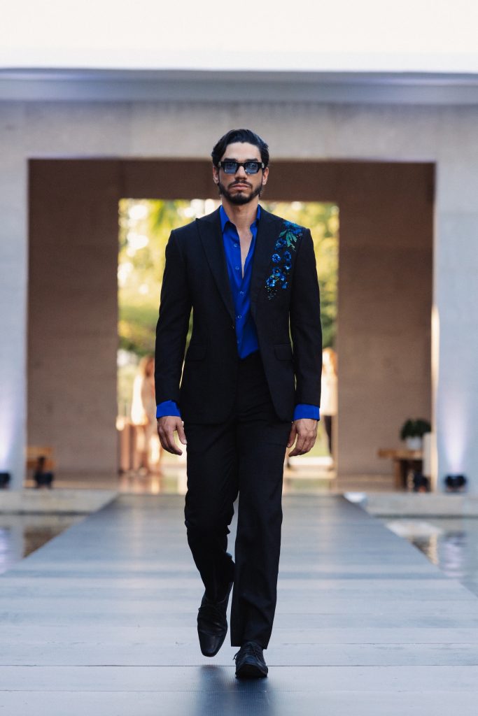 En esta edición, el universo masculino tomó fuerza con Manuel Febrillet con Caballero Eterno, una colección queexplora la dualidad del hombre contemporáneo desde una elegancia profunda y contenida, equilibrando fuerza y sensibilidad.