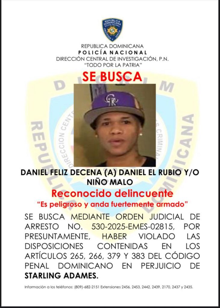 Los individuos identificados son Aneudy Reyes (a. “Arturo Bota Fuego”), Daniel Feliz Decena (a. “Daniel El Rubio”), José Manuel Celedonio Montero (a. “Nano El Abusador”) y Aron Calzado Salas (a. “El Verdugo”). La institución califica a estos sujetos como altamente peligrosos y advierte que portan armas de fuego de distintos calibres, manteniendo activas las labores de inteligencia y búsqueda para su inminente captura.